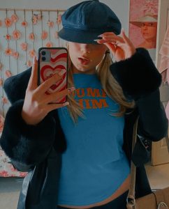 Partendo da TikTok, osserviamo la forza mediatica che ha fatto riscalare le classifiche alla vecchia I’m Blue degli Eiffel 65 (1997), ora remixata da David Guetta e usata viralmente in moltissimi video. Sempre sulla medesima piattaforma si assiste ad una carrellata di make-up tutorial che ci descrivono il modo più efficace per ottenere un trucco stile Duemila, senza uscirne con una faccia arancione rispetto al corpo. A darcene un esempio è l’instagrammer e tiktoker Michaila Cothran (a destra), che presenta abbinamenti perfetti e trucco impeccabile ispirando molte persone a creare, a loro volta, nuovi look e combinazioni. Come ci fa vedere la stessa Michaila, non c’è modo migliore per farlo se non attraverso il thrifting, o, come diremmo sconvenientemente in italiano, l’atto del comprare vestiti usati di seconda mano.