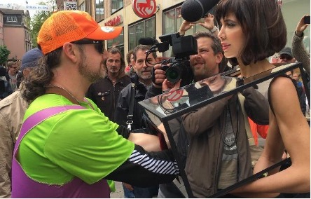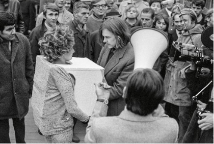 Milo Moiré, Mirror Box (2016) Valie Export, Tapp- und Tastkino (1968)