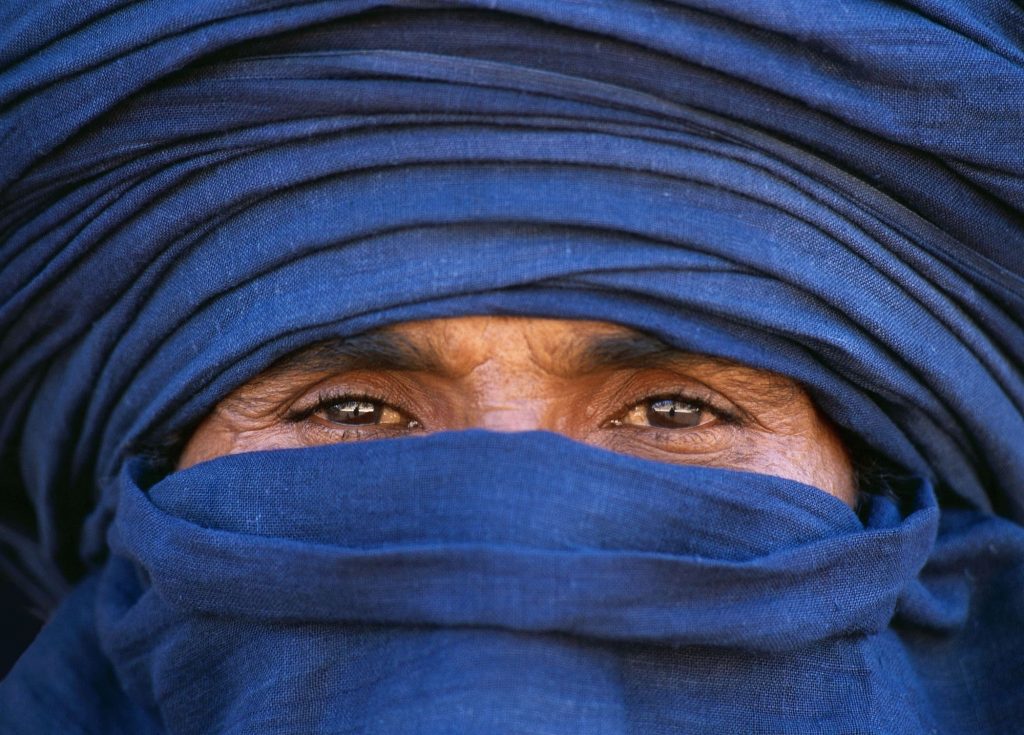 La popolazione Tuareg (impropriamente chiamata anche berbera) è uno dei gruppi nomadi dell’Africa sahariana, chiamata anche la comunità degli “uomini Blu” per il colore tipico del loro vestiario di lana o cotone, tinto con indaco, il quale tende a rilasciare sulla pelle una tinta bluastra col sudore e il sole. Durante il periodo coloniale hanno saputo resistere egregiamente alle intimidazioni francesi, grazie alla conoscenza del territorio e alle tattiche di combattimento. Si tratta di una società estremamente gerarchizzata, divisa in tre principali strati sociali: i nobili, i vassalli e gli schiavi. Generalmente, i primi amministrano le armi e, conseguentemente si trovano in prima linea al momento di necessità bellica. I vassalli sono uomini liberi che praticano l’allevamento sia di loro proprietà che in “affitto”, quindi gestendo il bestiame di proprietà altrui, percependo un compenso. Gli schiavi, invece, sono “premi” di guerra: questa figura dovrebbe essere, secondo la legislazione portata dai coloni francesi, completamente abolita, ma ancora rimangono forme varie di schiavitù nella comunità Tuareg.